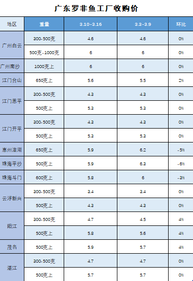 20240316广东罗非鱼工厂收购每周报价